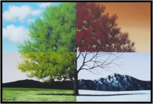 The tree grows from a seed to grow and transform into its blossoming state, soon it moves to the time when it leaves change and then let’s go of its leaves so it can be rebirthed and offer new shoots again in the spring.
